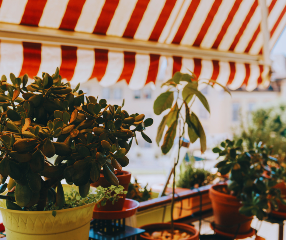 Αστική κηπουρική: Οι τέντες μπορούν να προσφέρουν επίσης καταφύγιο για έναν μικρό κήπο στο μπαλκόνι σας, προστατεύοντας τα φυτά από τις έντονες καιρικές συνθήκες και την ηλιακή ακτινοβολία. Δημιουργήστε τον δικό σας πράσινο παράδεισο κάτω από την τέντα σας.